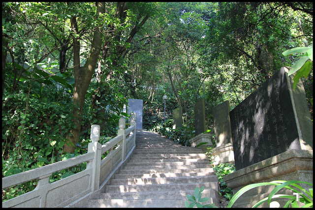 Further up I arrived at this huge arch stating 广州碑林 which means "Guangzhou Monument Forest" as there were arrays of stone monuments erected around the area, some properly placed while some are hidden under trees or at the side of the passage way.